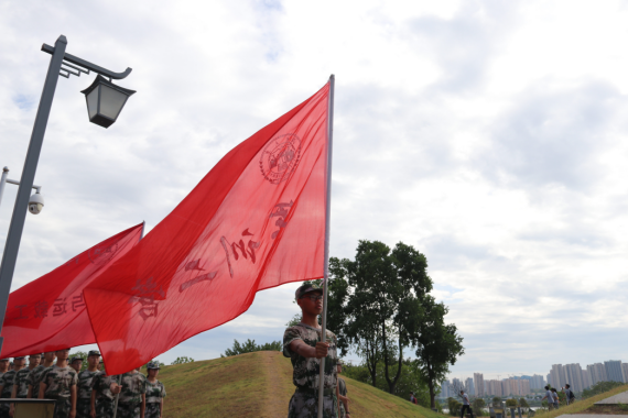 大家在营旗、院旗下合影留念,