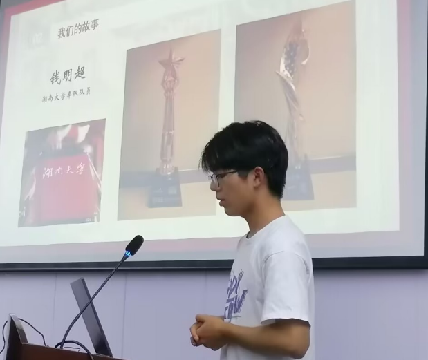 班会伊始,班长叶林星喆向丁院士及各位领导介绍了同学们的学习情况、科研进展、获奖荣誉和未来规划。接着我班四位优秀代表邢志涛同学、杨少晨同学、赵鑫杰同学和钱明超同学分别讲述了他们在竞赛、志愿服务、班助工作和车队的经历和感触。其中,钱明超同学分享了他作为机械院车队技术组组长参与2022年中国大学生方程式汽车大赛的故事,收获了丁院士的宝贵建议。