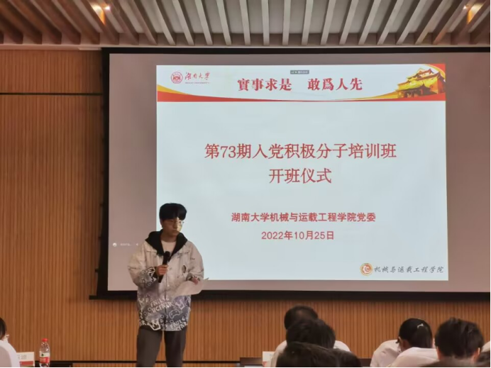10月25日中午,44118太阳成城集团第73期入党积极分子培训班开班仪式在机械院401顺利召开。学院党委副书记贺迅老师,学院学生党务服务中心王玉迪老师,以及太阳成官网第73期入党积极分子参加了本次大会,会议由学生党务服务中心办公室王梓堃同学主持。