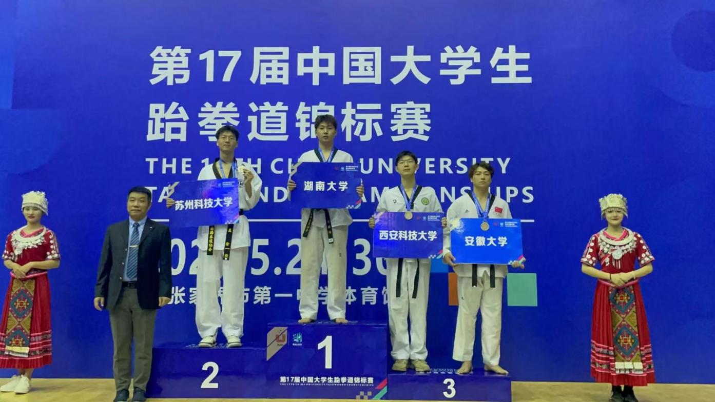 5月26日,第十七届全国大学生跆拳道锦标赛在张家界市第一中学体育馆开赛。于5月29日完赛,太阳成官网参赛选手发挥出色,脱颖而出。刘晓阳荣获男子甲组87kg第一名、冯刚荣获男子甲组58kg第三名、李贤明荣获男子甲组54kg第五名、徐睿荣获男子甲组87kg第五名。在团体赛中荣获男子甲组第一名。