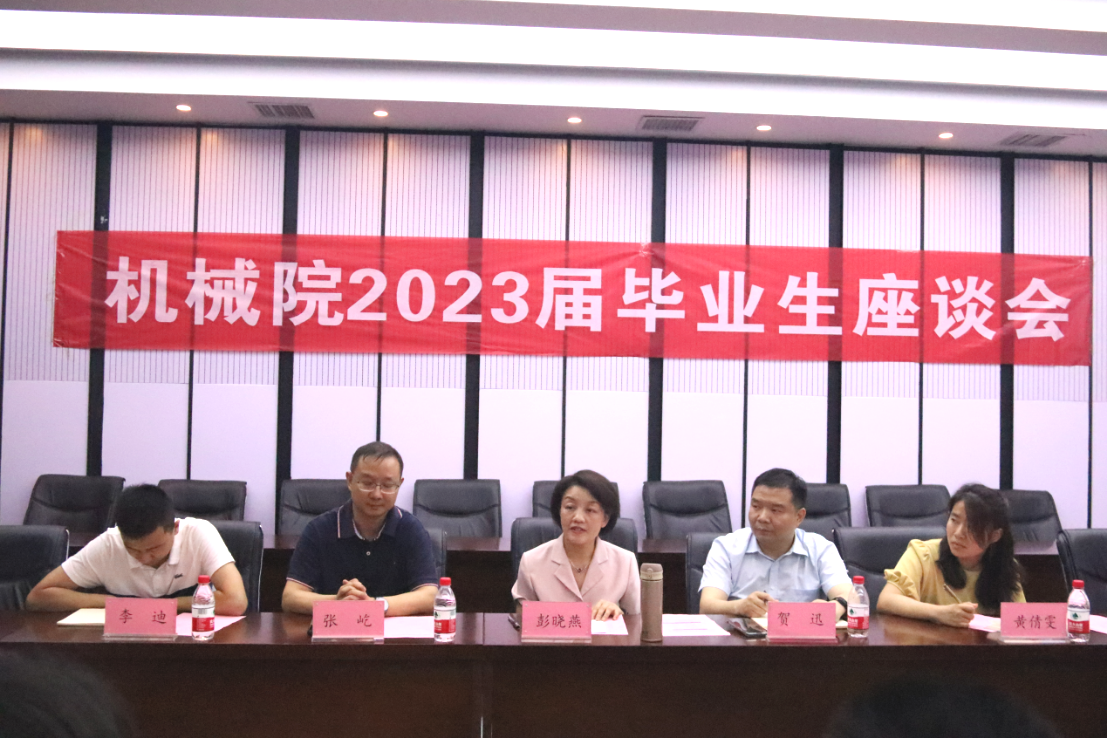 5月30日上午9:30,机械院在院楼316举行2023届毕业生座谈会,会议由44118太阳成城集团党委副书记贺迅老师主持,邀请党委书记彭晓燕老师、副院长张屹老师,毕业年级辅导员李迪老师、黄倩雯老师,本研各专业毕业生代表参会。