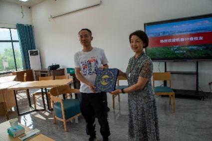 在人员到齐之后,校友们和彭晓燕书记、贺迅书记、侯淑娟老师和金湘中老师一起在院楼六楼咖啡厅进行交流座谈。座谈会上,彭书记首先致辞,对同学们的到来表示热烈欢迎,对校友们的回访回馈表示真诚的感谢并送上衷心的祝福。接着,贺书记向校友阐述了这些年来湖大及机械院取得的成就和发生的变迁,金湘中老师随后补充说明了机自专业这些年的成就与变化。在了解了机械院十年来的发展之后,让同学们都不禁感慨机械院的光明前景,令人充满期待。随后,师生之间开始分享自己的这些年的体悟。班主任侯淑娟老师对大家这次重聚表示欢迎和欣慰,感慨同学们十年归来,仍是少年,意气风发,眼里有火,心里有光,同时真诚地希望同学们要强健体魄,不忘初心,将下一个十年塑造得更加辉煌灿烂。同学间也派出代表道出了同学们的心声,表达了对学校提供的平台、对老师和团队的帮助、对自身努力的感谢。同时,同学们集体向老师们献上鲜花,表示祝福与感谢。贺书记也代表学院致校友们以精美的纪念礼物及明信片等,再次表示对校友们的感谢与欢迎。