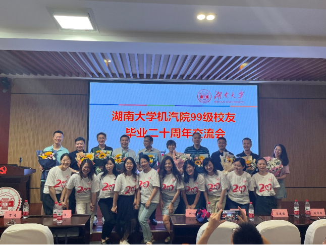交流会结束之后,99级校友协同老师一起在机械院楼前进行合影留念。二十年过去,学生与老师都在一届届更替,但只要有同一个湖大在这里,就能从天南海北再聚首。这种情怀会像酒一样,越酿越纯,随着时间越发深厚。期待着下一个十年同学们再相聚,风流依旧。
