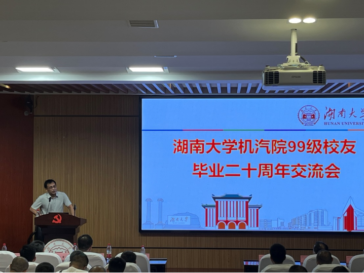 7月15日,机汽99级校友如约在走出校门的第二个十年相聚母校,来了一场跨越时间与空间的重逢。本次校友返校以交流会形式在机械院楼401报告厅举行,由机汽99级校友组织,机械院执行院长姜潮、党委学生工作部副部长蔡建国、学校巡察办副处长潘刚峰、机械院副院长刘坚、机械院党委副书记贺迅、刘拥华老师作为老师代表参会,并特邀99级在校书记何竹华老师以及99级辅导员刘建国、黄宇娟老师等共同参与此次二十周年交流会。99级机汽各班都有校友代表以及随行家属到场,交流会上热情洋溢,气氛热烈。又一个十年的再次相聚让老同学们感受到家的温馨与老友重逢的喜悦。