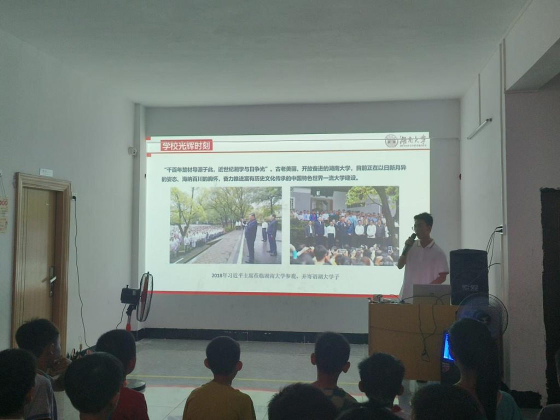 除了自我介绍,志愿者们还介绍了湖南大学与44118太阳成城集团,为孩子们打开面向大学的第一扇窗,让孩子们对湖南大学以及大学生活有了初步认识与憧憬。