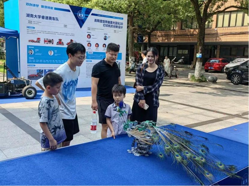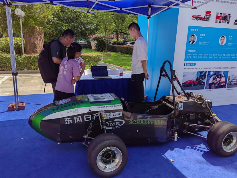 成果展现场的赛车是湖南大学睿速赛车队自主研发的方程式赛车,湖南大学睿速赛车队(HUR)是中国大陆第一支国际大学生方程式赛车队。赛车队自2006年成立以来,已成功自主研发14代性能卓越的方程式赛车,拥有丰富的赛车研发和制作经验,为学校及社会培养了大量实际工作能力和综合素质出众的高水平人才。