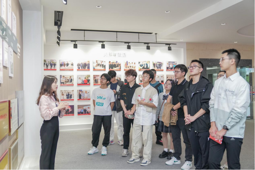 之后,在啄木鸟公司HR杨超的陪同下师生一齐参观了公司的展厅,从公司的一张张照片、一件件展品中了解到了公司的创建历史,同学们明白了啄木鸟公司是如何从无到有,又如何一步步走到该领域的前沿,感受到了浓厚的学习氛围,也体会到了公司认真、诚实、感恩的核心价值观。出了展厅,在我校校友,公司研发项目小组组长徐佳兵的带领下,一行人参观了公司的数控生产车间与国家地方联合的工程实验室,该实验室集合了抗电磁干扰检测、抗电压波动检测、产品抗老化检测等近十个各类实验为一体,高端的技术创新、坚实的自主研发团队、先进科学的管理体系,继承和发扬着大国工匠精神,承载着中华优秀文化基因,助力企业研发生产合格、安全、稳定的高质量产品。