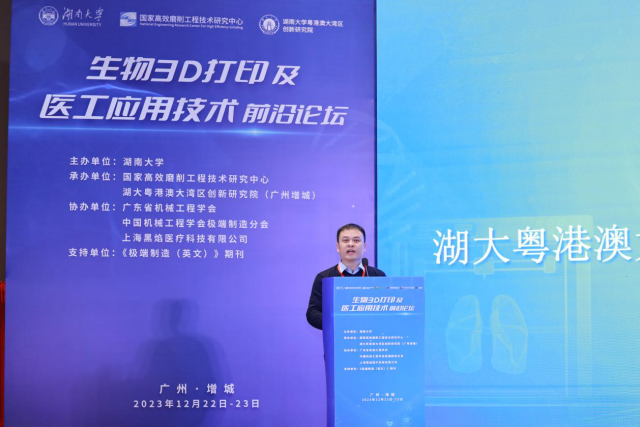 本次论坛由湖南大学主办,国家高效磨削工程技术研究中心、湖大粤港澳大湾区创新研究院(广州增城)承办,广东省机械工程学会、中国机械工程学会极端制造分会、上海黑焰医疗科技有限公司协办,《极端制造(英文)》期刊提供支持。论坛旨在进一步推动生物3D打印与医工应用技术的发展,促进跨行业的交流与合作,更好地将生物3D打印与临床应用相结合,引领未来的医学发展方向,以提供更好、更快、更安全的医疗解决方案。