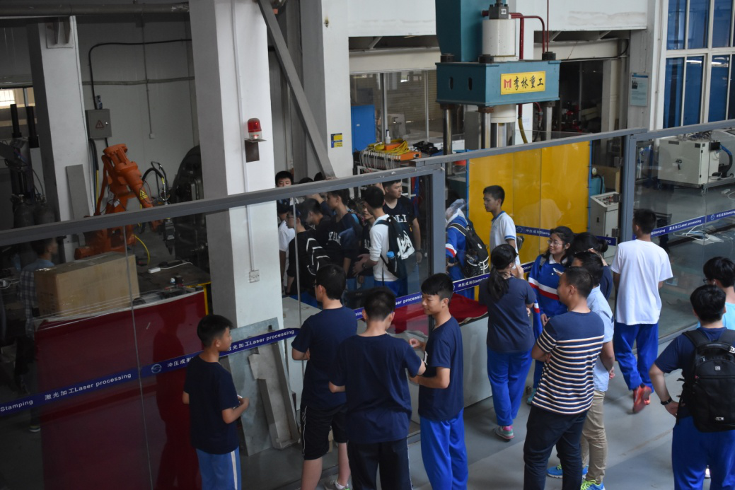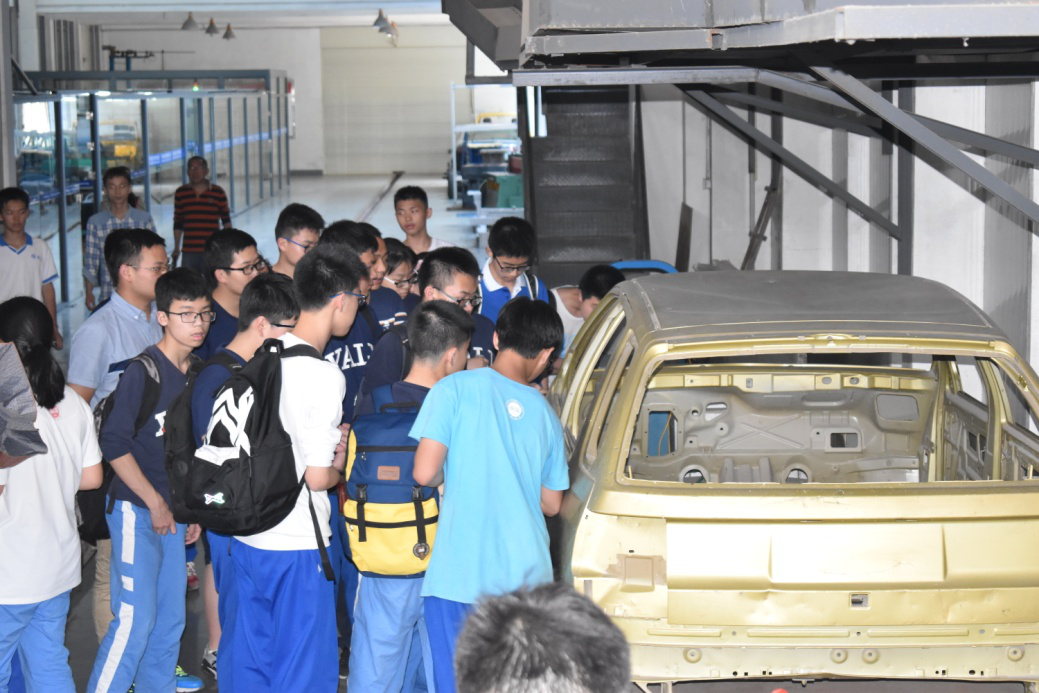 在讲解员的带领下同学们参观了实验室成果展厅、用于汽车整车外观模型和内饰模型精密加工的轻型五轴高速数控加工中心、汽车碰撞实验室、用于汽车白车身覆盖件三维焊接的光纤激光焊接系统。在“中气轿车”、“棱形轿车”等成果设备前,同学们表现出极大的兴趣,详细询问了各汽车及科研设备的性能特点和科研用途,大家进行了热烈的讨论。