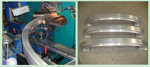 李落星教授团队研发的基于精确控温的高效短流程挤压加工技术,通过数值优化与计算机模拟,精确控制铝、镁合计挤压出口型材温度,利用挤压变形余热,实现了在线淬火和在线弯曲加工过程的有效整合。新工艺克服了弯曲型材传统加工中存在的工艺复杂,加工周期长,成品率低等问题,大幅度提高了生产效率和产品质量。
