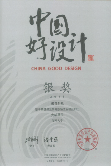 “中国好设计”评选活动由路甬祥院士发起,中国工程院指导,中国创新设计产业战略联盟主办。2016年中国好设计奖从广泛征集的千余项设计方案中遴选出27项好设计,并由20余位院士和专家针对入选的好设计作品严格评审,以无记名投票方式,选出8项中国好设计金奖、19项中国好设计银奖。湖南大学等3家单位获得工艺技术类仅有的3项银奖。