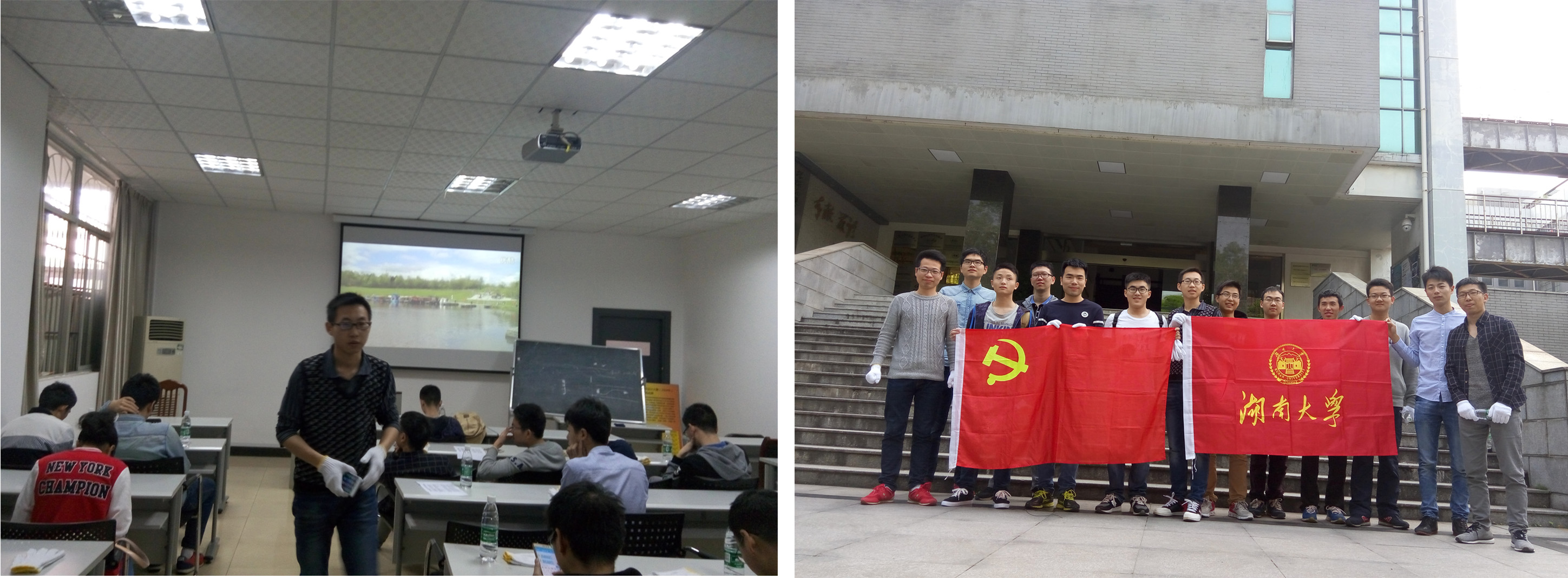 教育实践活动在我校机械院和岳麓山风景区进行。本次“节能减排,绿色生活”教育活动以宣传、交流讨论和环保实践活动的形式开展。活动内容:通过微信等社交平台宣传,环保影片观看,小组交流与环保实践活动。其中,环保实践活动主要是组织参与活动的党员攀爬岳麓山,同时进行“节能减排、绿色出行”主题的环保宣传,并对岳麓山沿途的垃圾进行收集,放置至指定的垃圾箱。