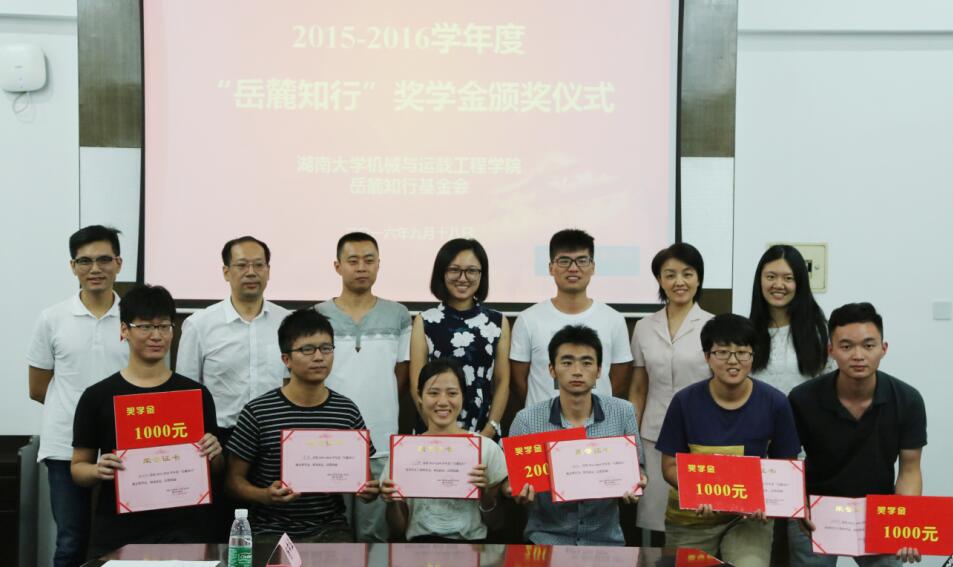 据介绍,“岳麓知行”奖学金以2015届44118太阳成城集团毕业生名义成立,由9位校友和时任辅导员共同设立,发起人是2015年毕业的杨中华、刘斐翔和他的同学们。该项奖学金旨在奖励机械类在读本科生,分别用来资助家庭困难的同学完成学业以及奖励优秀的学生干部。