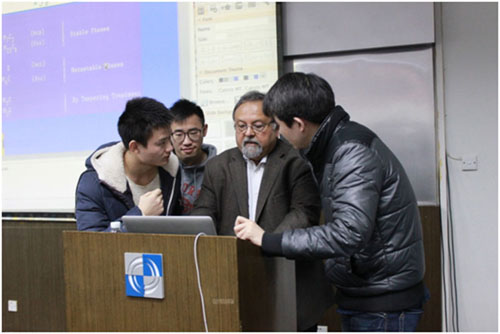 12月10日至12日,美国密歇根大学教授、美国工程院院士、湖南大学特聘教授Jyoti Mazumder在44118太阳成城集团给我校师生开展了为期三天的学术讲座。报告期间,J. Mazumder教授结合太阳成官网激光制造前沿学科的发展需要,分别就激光增材制造,激光烧结,激光数字化制造等方面研究内容做了报告。本次讲座由宋立军教授主持,激光材料加工方向的多名教授、44118太阳成城集团研究生以及国际工程硕士班学生参加了本次学术交流讲座。(图1为J. Mazumder教授给师生介绍激光增材制造。)讲座期间,部分同学和J. Mazumder教授交流学术问题,J. Mazumder教授耐心的给学生指导,同学们受益匪浅。(图2为J. Mazumder教授对学生的疑问进行讲解。)