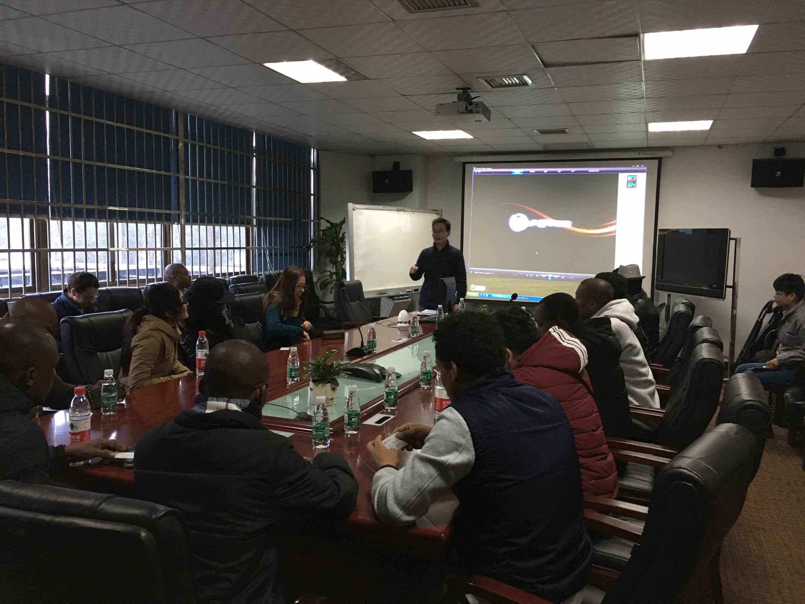 随后,福田国际贸易公司工程车销售公司的高级经理为留学生们详细介绍了福田公司的整体情况、产品线构成、公司技术优势和营销情况等。学员们听得聚精会神,不时低头记录,在提问环节中就营销策略、公司的发展规划等问题与厂方代表展开了积极的互动。