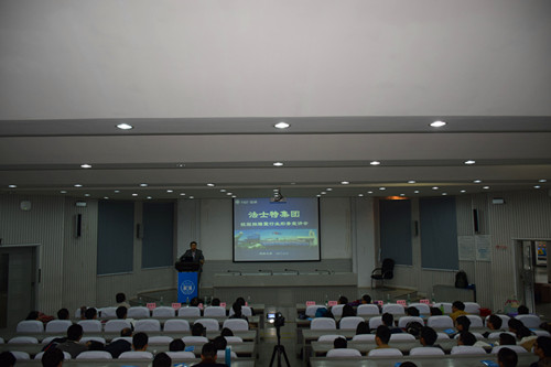 随后进入“法士特集团2016校园招聘宣讲”环节。法士特集团李大开书记首先做企业招聘宣讲及行业形势分析报告。李书记回顾了法士特集团由一个外资控股的三线企业发展到由中方控股、蜚声海内外的民族品牌的发展历程,鼓励同学们要有艰苦奋斗的精神和报效祖国、成为行业领先的远大理想。接下来,李书记也结合企业管理实践谈了对中国制造业前景的展望,希望能通过不断的创新体制机制和关键技术,解决“腐败”和“落后产能”所造成的不良影响,也希望同学们能坚持自我,做事为先,不沾染社会不良风气,传播正能量。