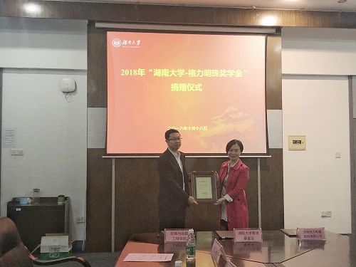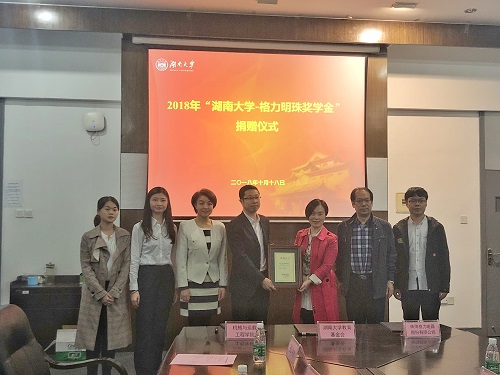 最后,由湖南大学教育基金会秘书长邓利华为格力集团颁发捐赠证书,全体嘉宾合影留念。