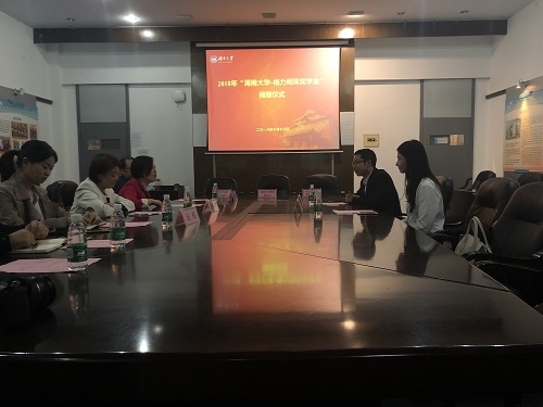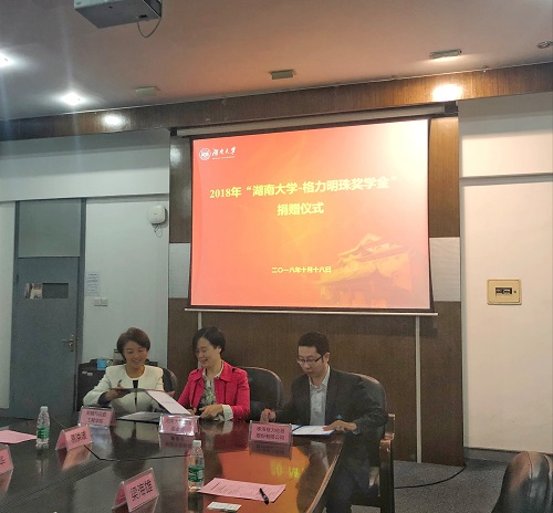 10月18日,“湖南大学-格力明珠奖学金”捐赠仪式在机械院楼516举行,珠海格力电器股份有限公司向湖南大学捐赠奖学金,主要用于资助、奖励优秀学生典型。珠海格力、湖南大学教育基金会、44118太阳成城集团相关单位负责人出席捐赠仪式。太阳成官网党委副书记易洪波主持仪式。