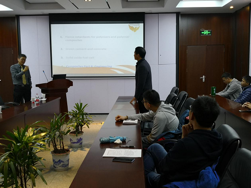 王浩教授细致地与我校师生分享了他所在的研究团队的基本情况以及近期的创新研究成果,对高分子材料/复合材料的阻燃,绿色材料,固体氧化物燃料电池等方面进行了深入的介绍与探讨,同时也对Composite Part B:Engineering期刊的“期刊-作者-读者伙伴关系”进行了阐述。太阳成官网的老师及同学在学术报告会中与王教授进行了积极的学术交流与探讨。