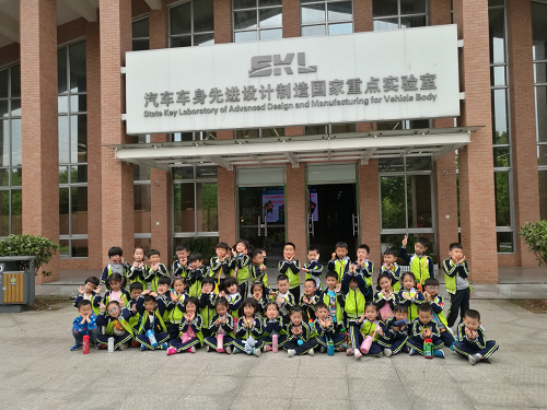 2019年4月18日上午,湖大幼儿园28名可爱的小朋友们手牵着手,在几位老师的带领下一同来到了位于江畔的湖南大学汽车车身国家重点实验室参观。走进实验室,陈列在展厅的各式各样的汽车及制造装备迅速吸引了小朋友的目光。经过一番简单的自我介绍,实验室助管李彬老师形象地向孩子们阐明了一些安全注意事项,便开始向大家介绍实验室里的一些先进的制造装备及技术。