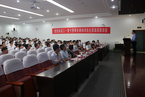 报告会上,梁林河教授以“创新与创业”主题作报告,介绍了三一工程机械的创业历史、三一重卡的创新商业模式,并回答了学生提出的问题,以自身丰富的创新创业经验,鼓励学生勇于开拓,会后梁林河教授和师生进行了热烈的交流和讨论。